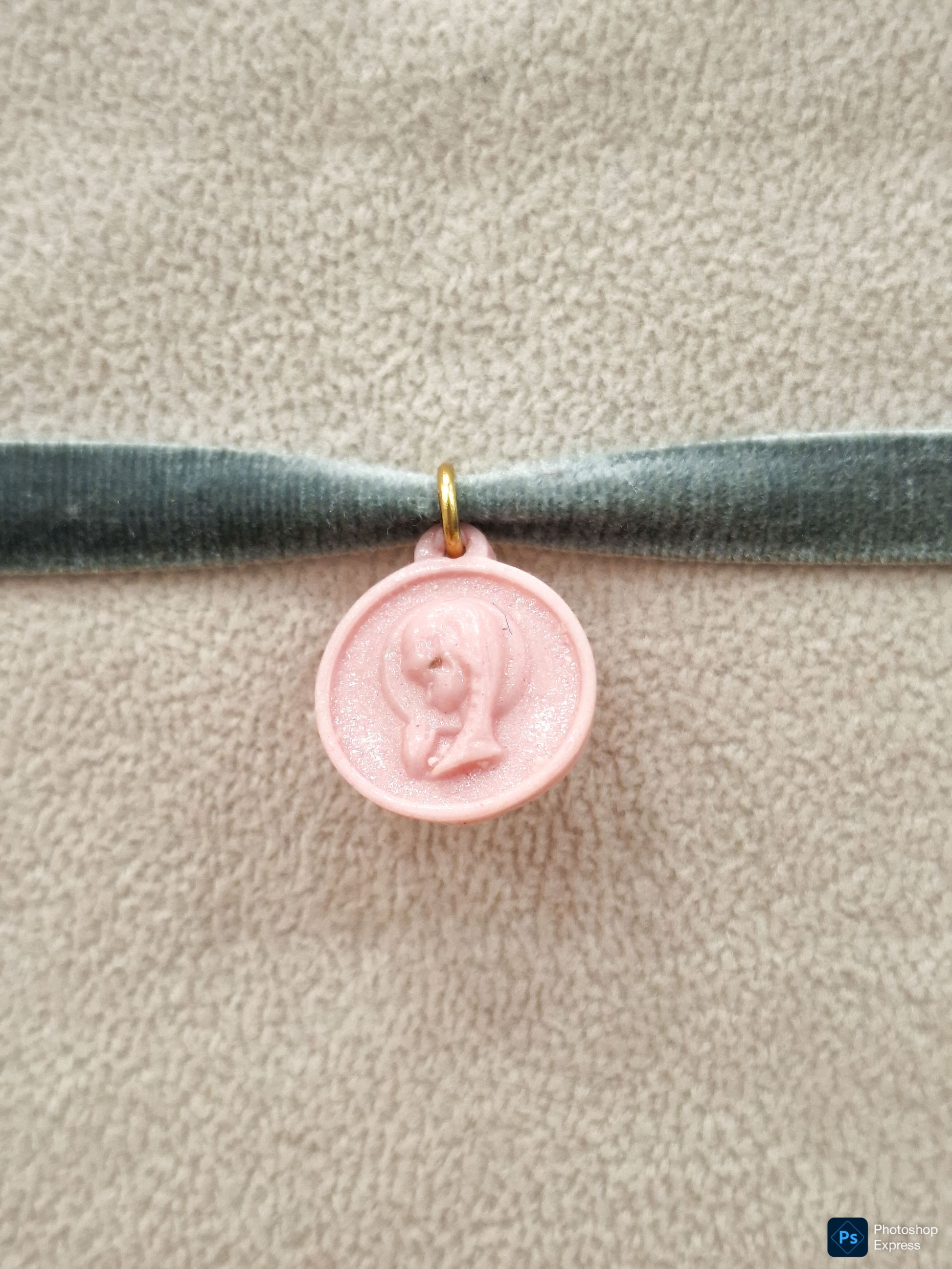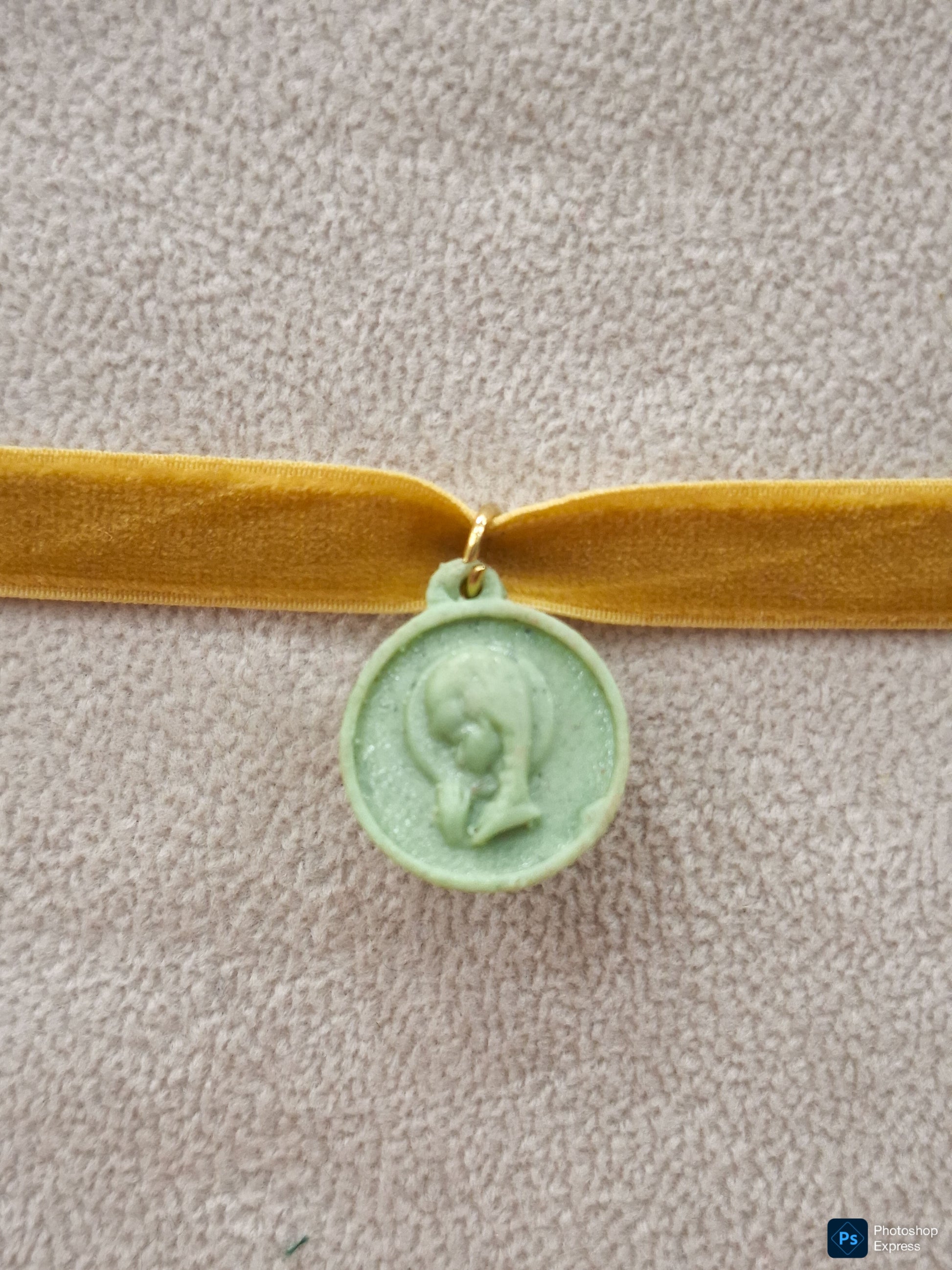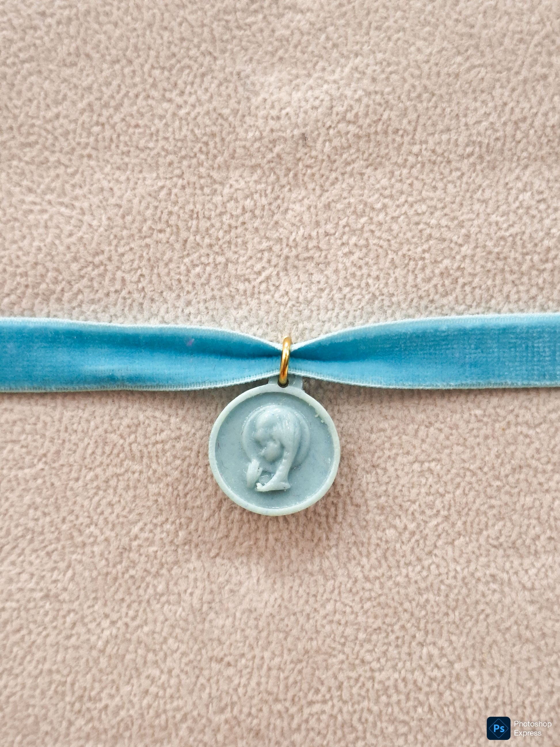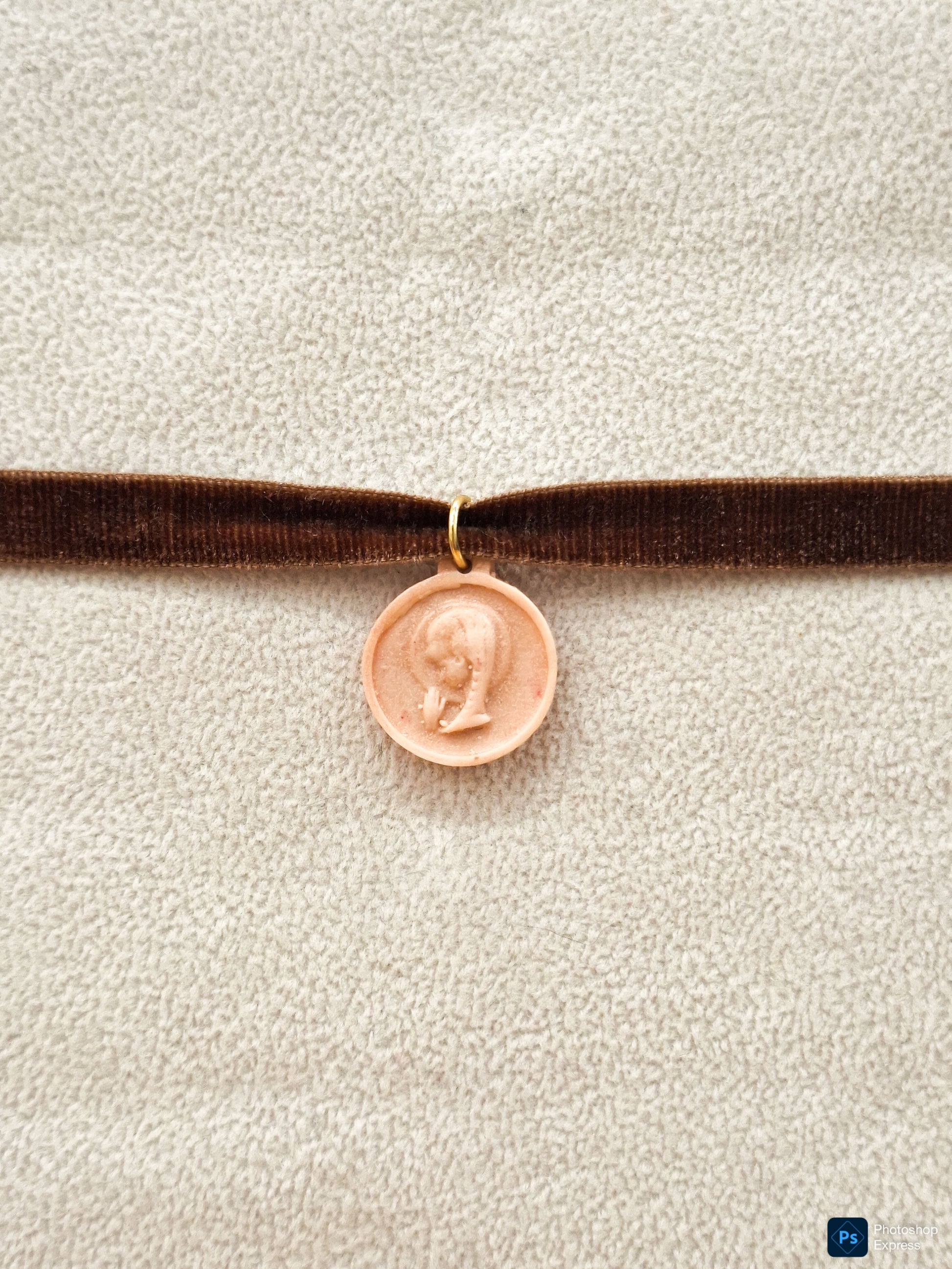 Collar corto de terciopelo elástico con Virgen Niña de resina.