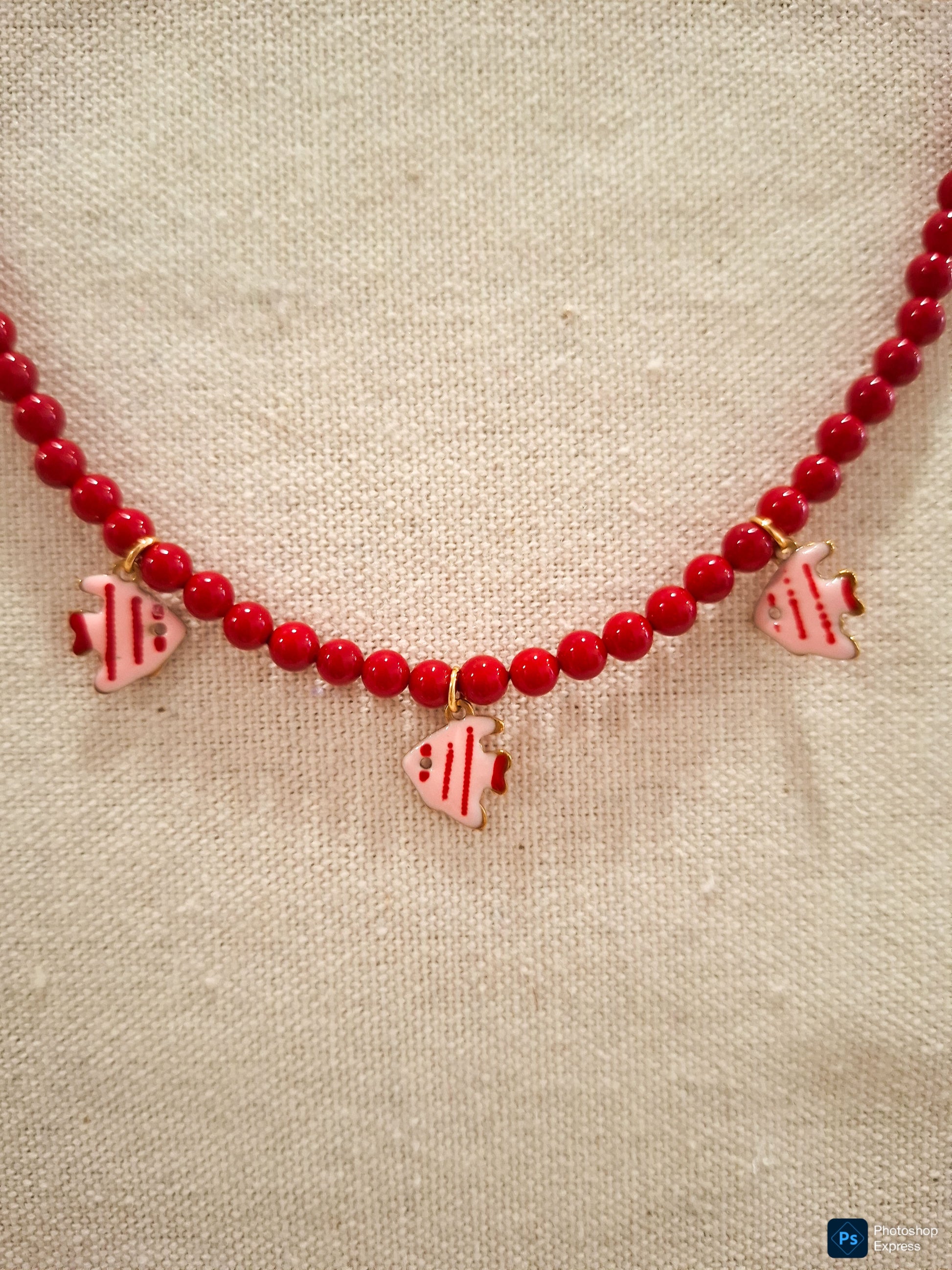 Collar corto de bolas con accesorios esmaltados y cadena de acero inoxidable.