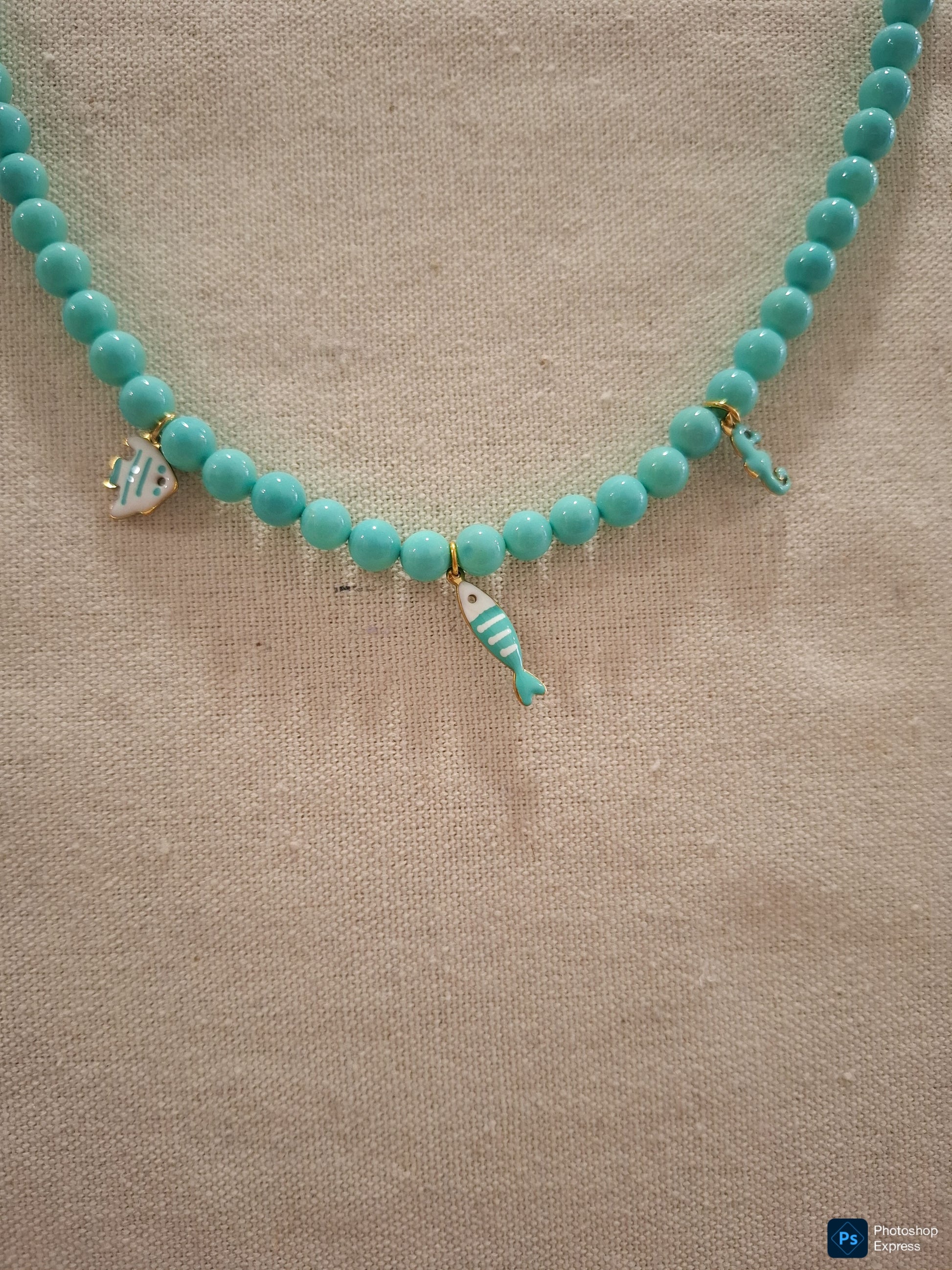 Collar corto de bolas con accesorios esmaltados y cadena de acero inoxidable.
